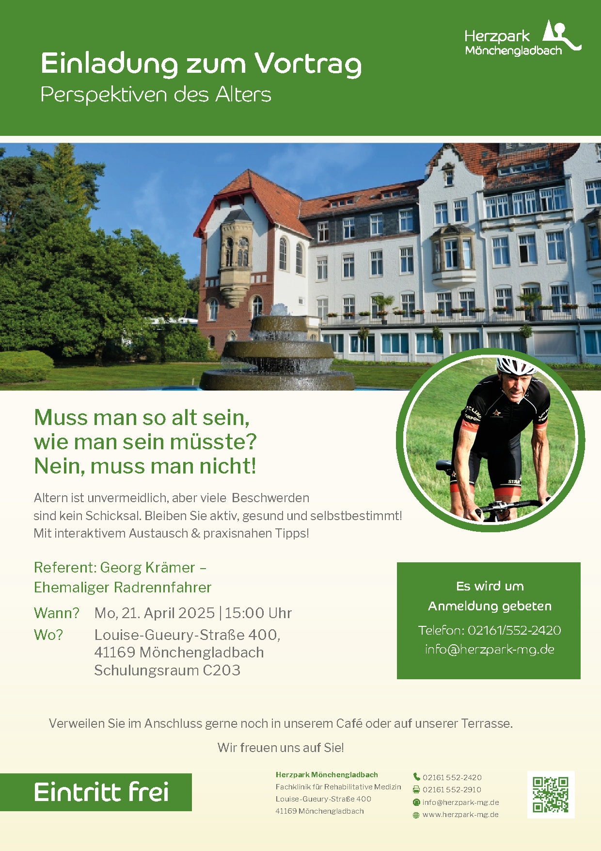 Als ehemaliger Radrennfahrer, wird Georg Krämer praxisnahe Tipps geben, wissenschaftliche Hintergründe erläutern und aufzeigen, wie ein aktiver Lebensstil nachhaltig zur Gesundheit beitragen kann.